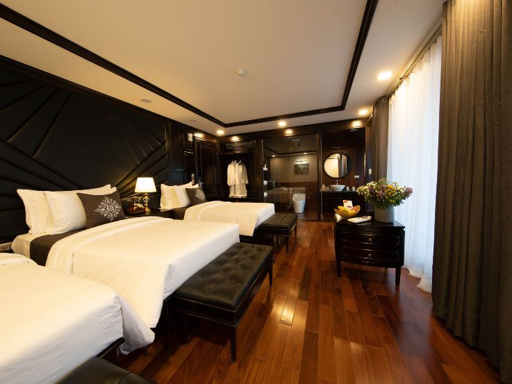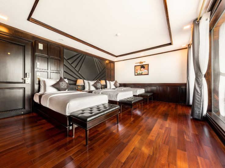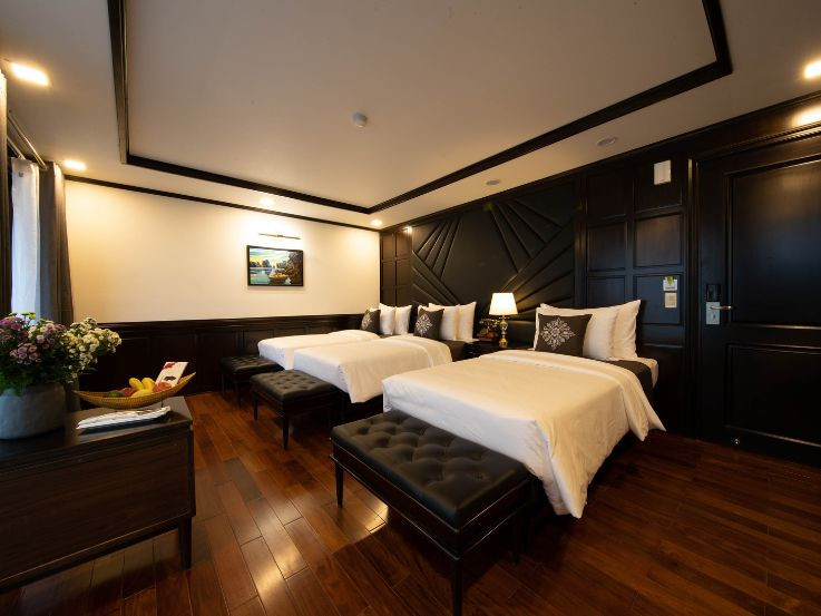 The Family Suite Connecting on Mila Grand Cruises provides spacious accommodation on the upper deck, offering better views and a more refined atmosphere. Designed with families in mind, it ensures both togetherness and privacy for longer and more comfortable cruise in Vietnam journeys.