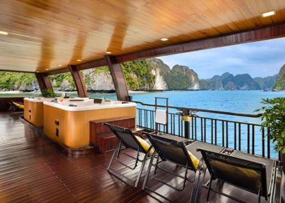 Soak in ultimate relaxation at Mila Grand Cruise’s ocean-view jacuzzi, where warm bubbling water meets uninterrupted views of limestone karsts. Surrounded by natural light and serene seascapes, this is the perfect spot to unwind, recharge, and enjoy a peaceful moment in the heart of the bay.
