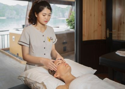 Hidden away from the rhythm of the journey, the spa offers a calming sanctuary where time seems to slow down. Skilled therapists help release tension and restore balance, allowing you to fully unwind and embrace the peaceful rhythm of your Halong cruise experience.