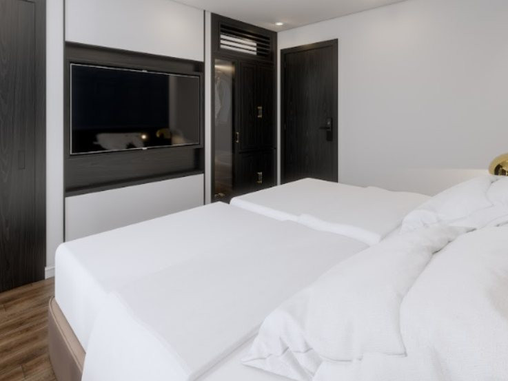 Nestled on the 2nd and 4th floors, this cabin includes a cozy layout and a private balcony for sea breeze enjoyment. The spacious bathroom with a bathtub and modern facilities makes it a perfect place to unwind in elegance.