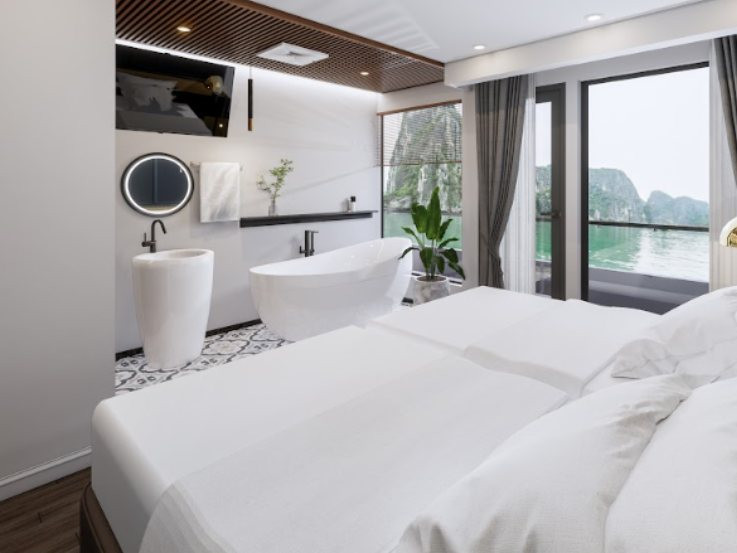 Located on the 1st deck, this cabin offers a comfortable and relaxing stay with a private balcony overlooking the bay. It features elegant design, a spacious layout, and a premium bathtub, perfect for unwinding after a day of exploration.