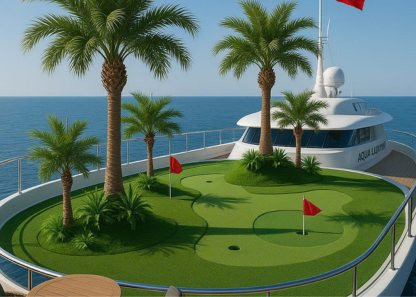 Aqua Luxury Cruise presents a unique onboard experience with its oceanview mini golf area. Nestled amidst tropical greenery and open sea vistas, this charming space allows guests to enjoy a relaxing game in a refreshing setting. Whether for casual play or leisurely moments, it adds a refined touch of fun to your journey.