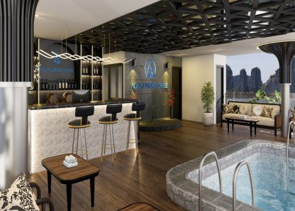 More than just a sightseeing Halong Bay tour, Aqua Luxury Cruise is designed as a true escape where guests can enjoy nature, recharge their energy, and unwind from daily life. Onboard facilities include a fine-dining restaurant, sky bar, spa, gym, sundeck, swimming pool, and even a golf area, all thoughtfully arranged to provide privacy, comfort, and enjoyment at every turn.