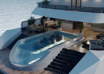 The onboard pool area combines elegant design with comfort, offering a perfect place to relax during the cruise. Surrounded by modern interiors and panoramic views, guests can enjoy a refreshing swim or sip cocktails at the nearby bar. It’s a stylish and serene space for rest and rejuvenation.