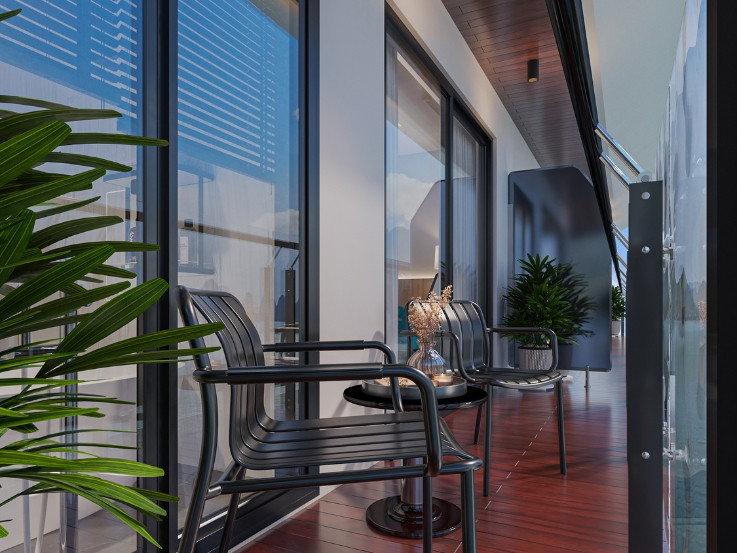 The Diana Junior Balcony cabins offer cozy elegance in a minimalist modern style. Located at the front of the ship, these rooms provide a quiet retreat with soft tones, warm lighting, and a private balcony for moments of serenity. The bathroom features both a jacuzzi and a standing shower for unwinding after a day of exploring the bay.