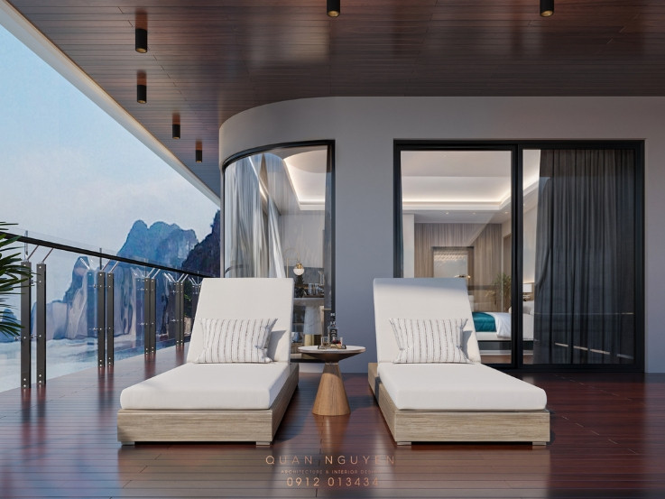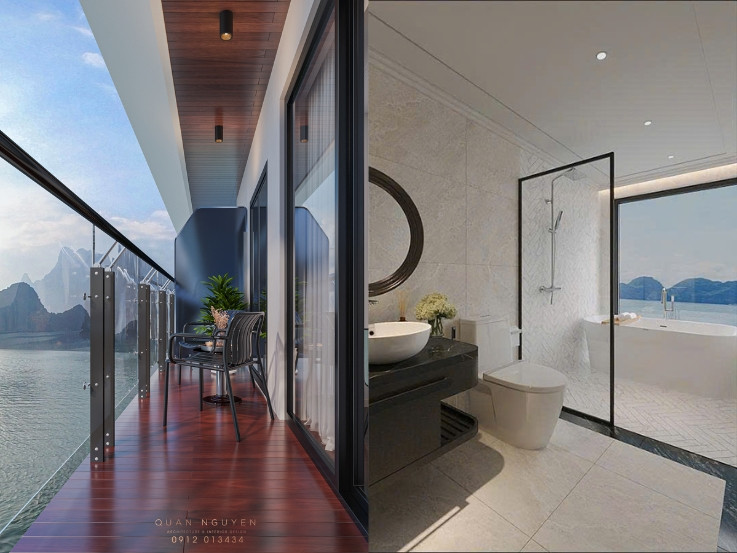 The Executive Balcony rooms take elegance to the next level, offering extra space and elevated views of Lan Ha Bay. Each room features a private balcony, luxurious bedding, and a separate jacuzzi bathroom. Whether you’re enjoying a romantic stay or a relaxing retreat, this cabin provides the perfect setting for a memorable Halong Bay tour.