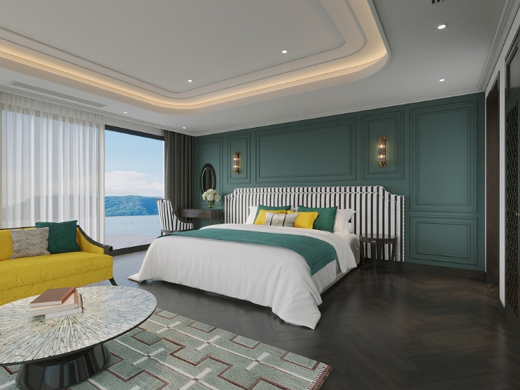 On Diana Cruise, you can sip cocktails at the Sunset Sky Bar, unwind at the four-season swimming pool, or let go of tension at the spa and wellness center. For something more active, try the mini golf area, fully equipped gym, or join the chef for a hands-on cooking experience. The onboard restaurant offers gourmet Vietnamese and international cuisine, prepared by master chefs and served with panoramic ocean views.