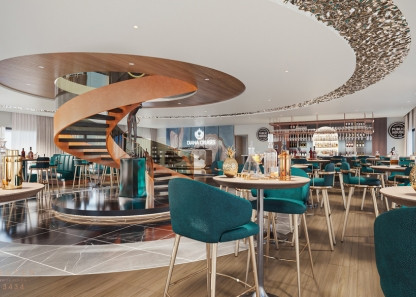 The signature Diana Suites are the crown jewels of the ship. Each suite features curved glass walls, an expansive private terrace with sun loungers, and a jacuzzi bathroom. Guests are welcomed with in-room wine and fresh flowers, along with a complimentary 30-minute massage.