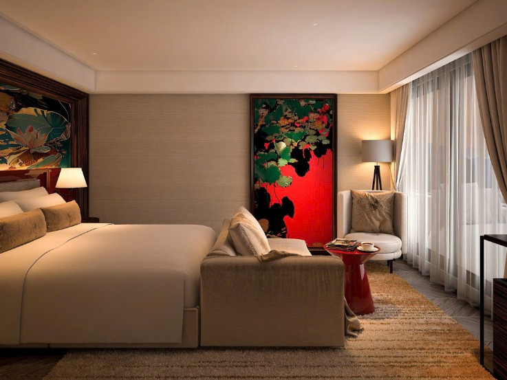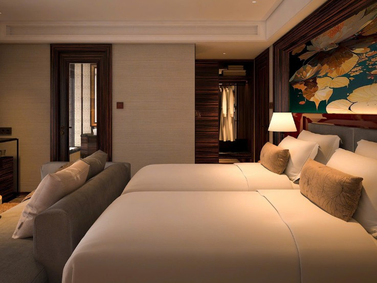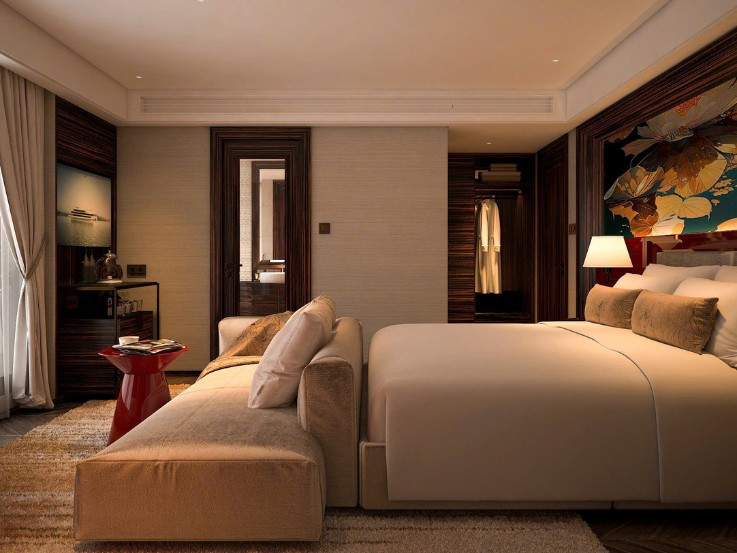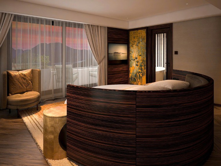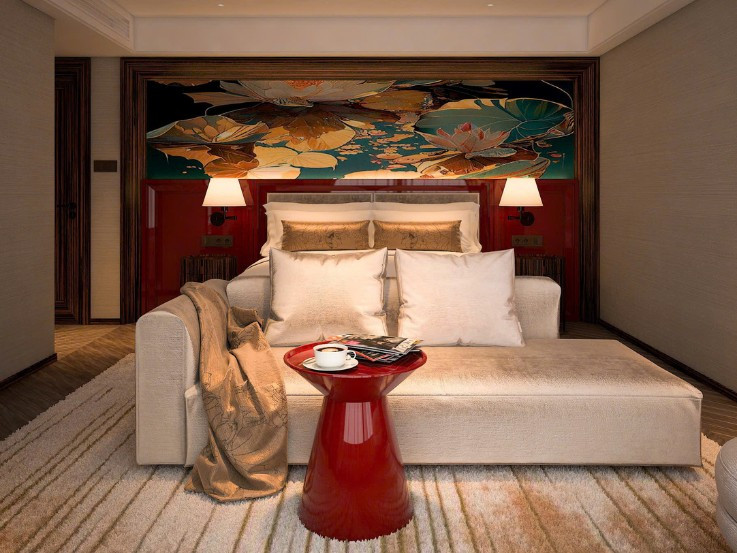 Located on a higher deck, the Premier Suite offers enhanced views and a more elevated ambiance. The design highlights lotus-inspired décor elements combined with modern luxury touches, creating a space that feels both elegant and calming.