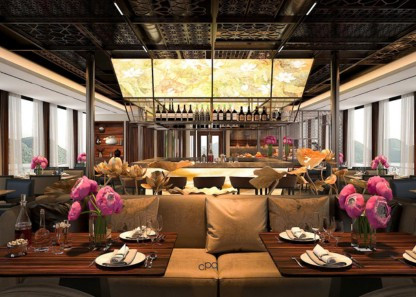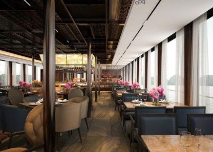 Guests can unwind on the teak-lined sundeck, relax by the infinity-edge swimming pool overlooking Halong Bay, or indulge in wellness experiences at the spa, sauna, and massage center. The 500m² restaurant and bar space offers a seamless blend of fine dining and panoramic views, elevating every meal into a highlight of the journey.