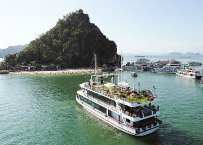 On the day itinerary or dinner itinerary with the Sweetness Cruise, guests will sail past limestone karsts, and crystal-clear waters, and explore top attractions in Halong Bay to feel the beauty of this world-class gem.
